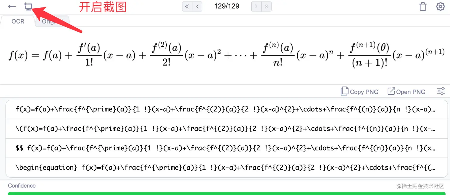 上面的公式还是比较简单,记住了LaTeX公式的编辑和Markdown源码还是很好编辑。但是如果公式(带有拉格朗日余项的泰勒公式)长成这样子: