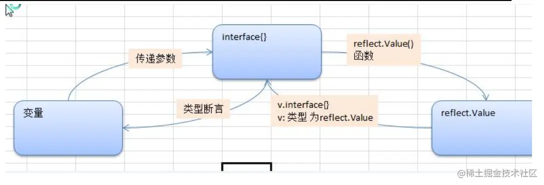 变量,interface{},reflect.Value是可以相互转换的.