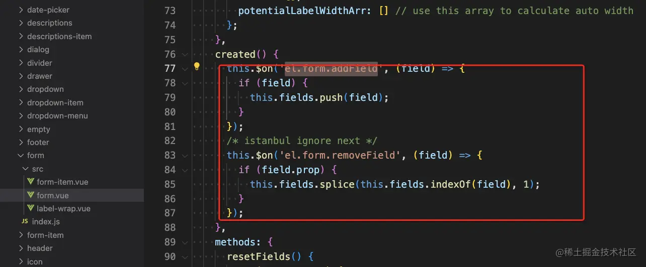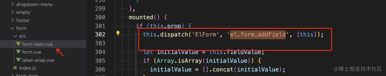 引人注意的是element 封装了一个全局通信的方法,可以学习一下。在form-item组件中为了达到和form组件的数据通信,调用了一个dispatch方法。