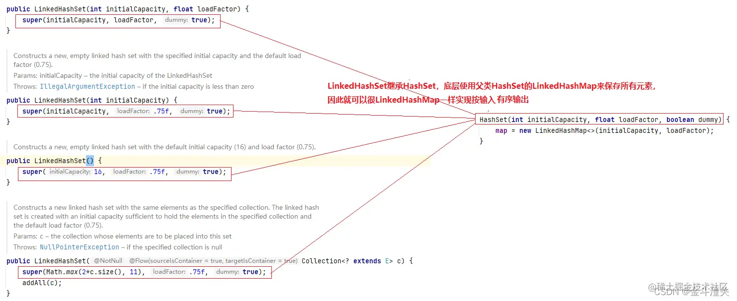 LinkedHashSet继承HashSet,底层使用父类HashSet的LinkedHashMap来保存所有元素,因此LinkedHashSet和LinkedHashMap一样可以按照输入顺序有序输出。