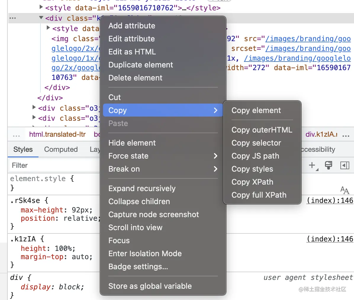 在日常开发中,我们会使用 Chrome DevTools 来调试页面,比如修改页面的样式、节点属性等。其为我们提供了复制数据的功能,可以将修改后的内容复制到源代码中。