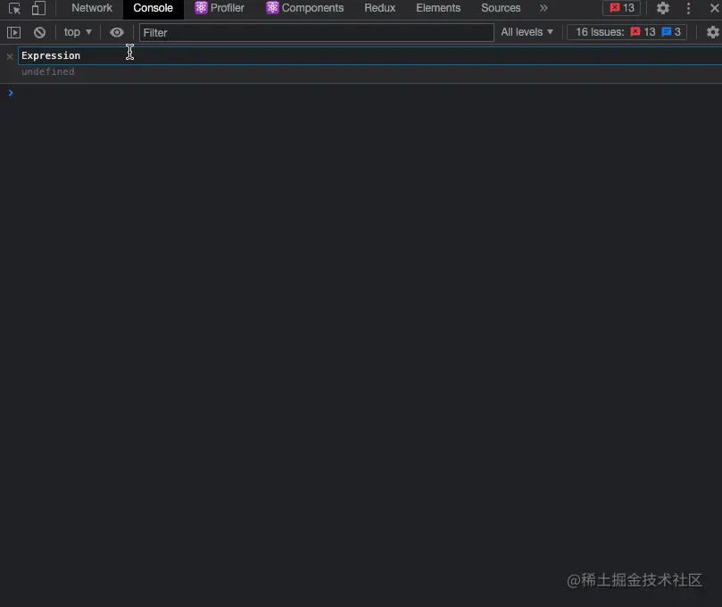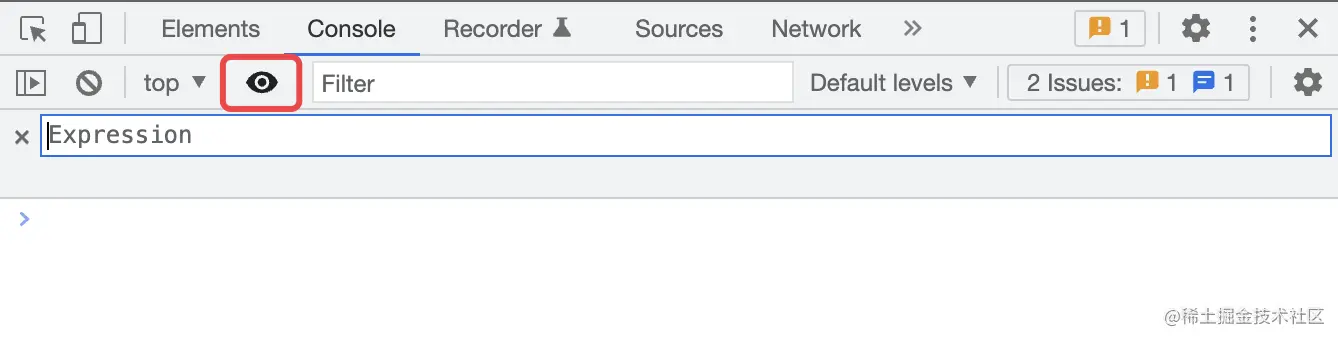 实时表达式是一种在表达式更改时显示其值的功能。 这有助于追踪代价高昂的表达式(如动画中使用的表达式)或变化很大的表达式(例如,如果正在遍历数组)的问题。它会将 Console 面板里的表达式置顶,并且能随着用户点击的变化,而动态刷新该置顶的表达式。