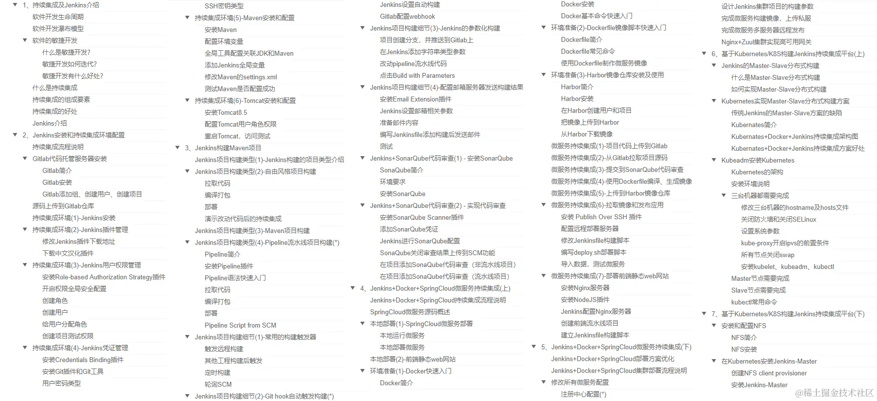 这位大佬把Jenkins从入门到精通都讲清楚了,可以说是业界最全了!下面来看看这份笔记的总目录及内容!