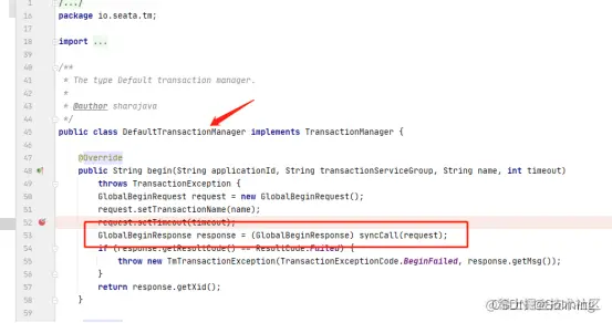 看 seata 的代码,response 的状态码异常才会 触发回滚。