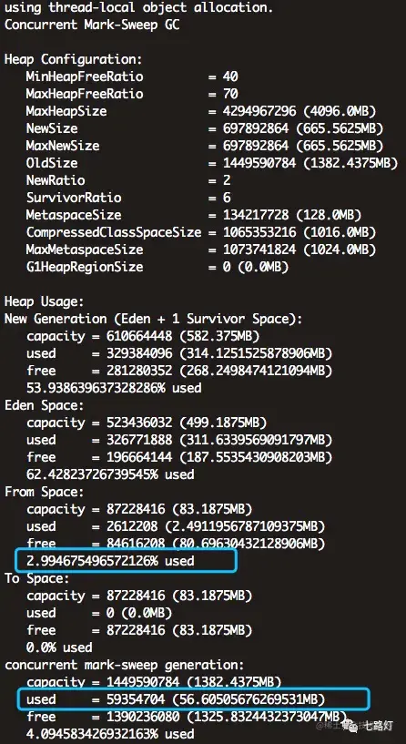 结果显示 老年代分片空间:OldSize = 65536 (0.0625MB) 新生代分片空间:MaxNewSize = 4294901760 (4095.9375MB) 频繁对老年代进行Full GC,引起CPU资源占用高。