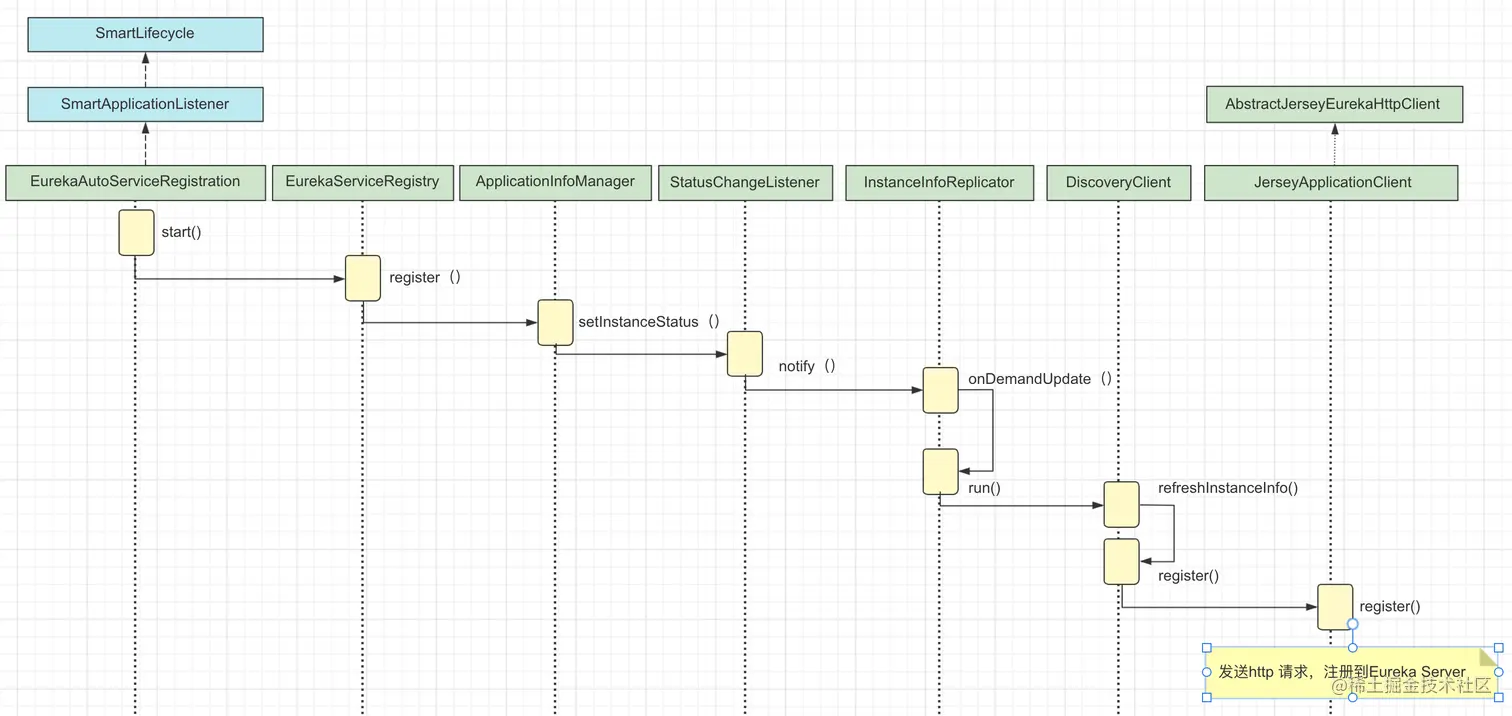 1)eureka 发起的服务注册的位置;