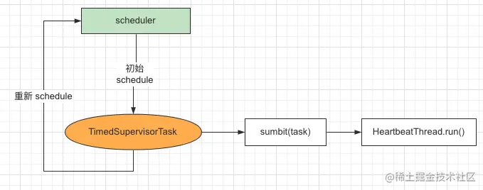 在客户端启动的时候,会创建一个保持心跳的定时任务,定时去和服务器发送心跳;