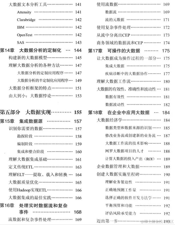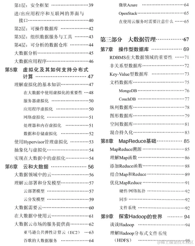 第二部分主要提供给技术或商业领域的专业人士,我们分析了几种不同类型的大数据元素,同时强调了几个重要的支持大数据的技术概念。在这一部分中,你将会了解到让大数据能够实际可行的基础架构类型。