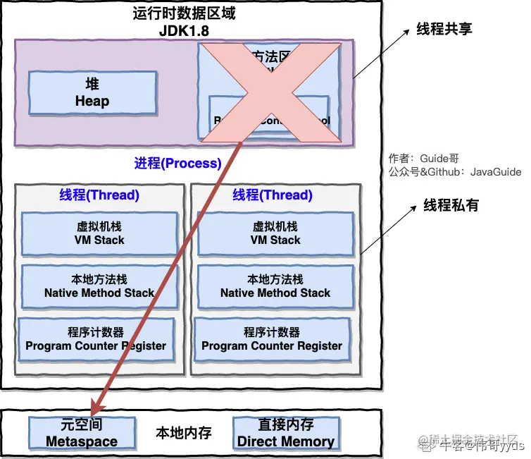 🙋 我: 好的! 下图是 Java 内存区域,我们从 JVM 的角度来说一下线程和进程之间的关系吧!
