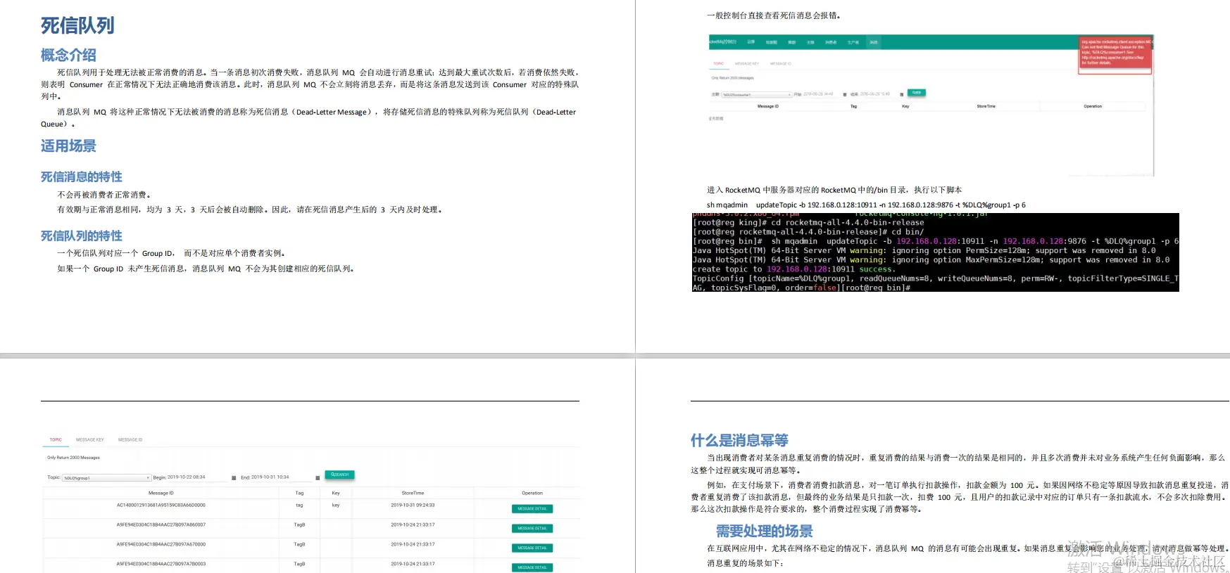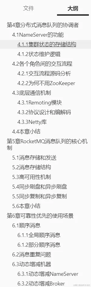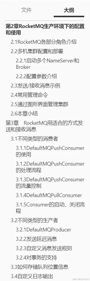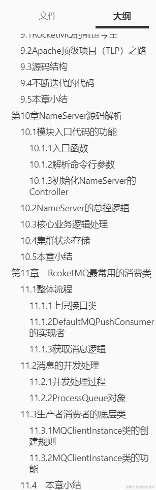 俗话说:“授人以鱼不如授人以渔”。在这分享这份RocketMQ实战进阶到源码分析手册给有需要的小伙伴, 从原理到代码最佳实践全方位指引,知识原理讲解采用图文并茂的方式,并将原理穿插到实战中!由于篇幅原因,本文只展示了目录和内容截图,有需要学RocketMQ实战到源码手册的朋友可以点进去了解一下,点击——【传送门】——即可!