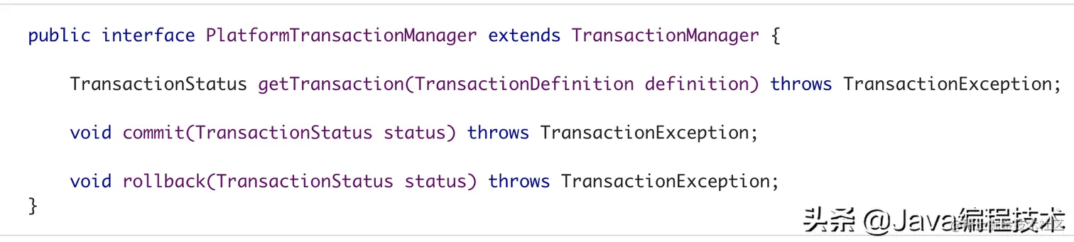 调用TransactionManager#getTransaction,可以传入TransactionDefinition,可以得到TransactionStatus。