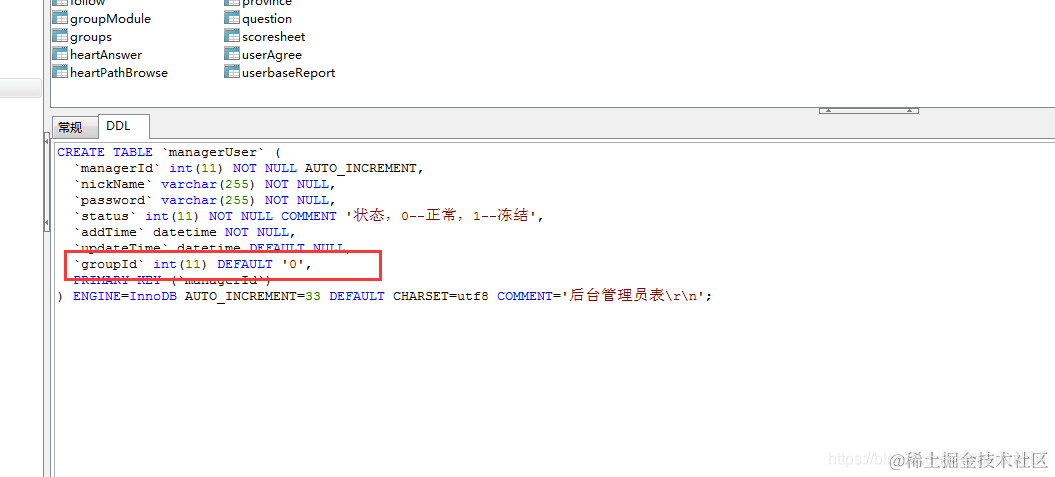 `groupId` int(11) NOT NULL AUTO_INCREMENT, '分组ID'
