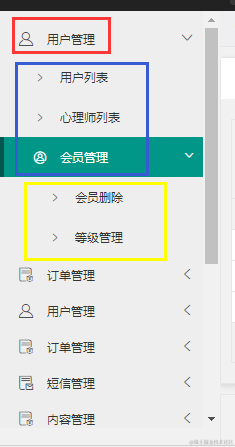 菜单栏的效果红色的是一级菜单 蓝色的二级菜单 黄色的是三级菜单