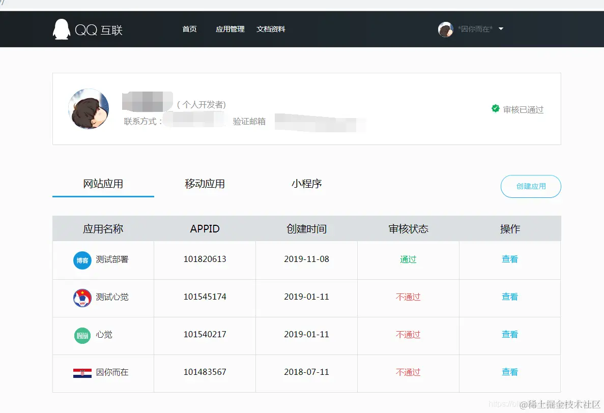 当审核通过之后 就可以创建一个应用 然后开发实际的登录效果啦