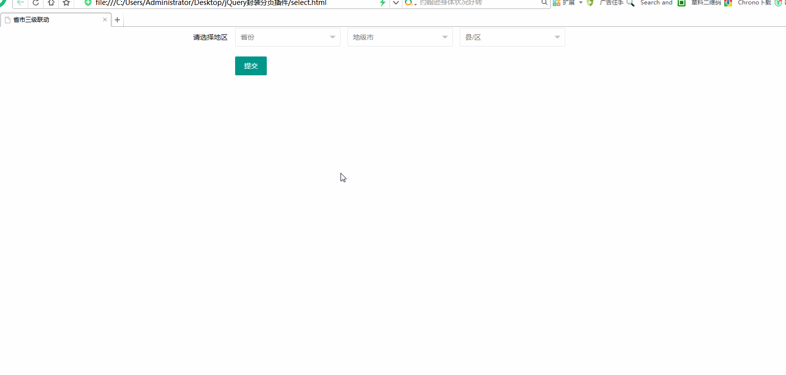 alert($("#province").val()+$("#city").val()+$("#district").val());