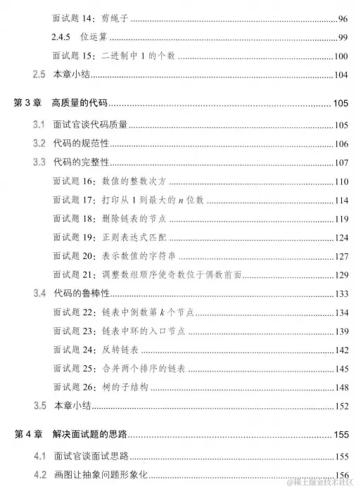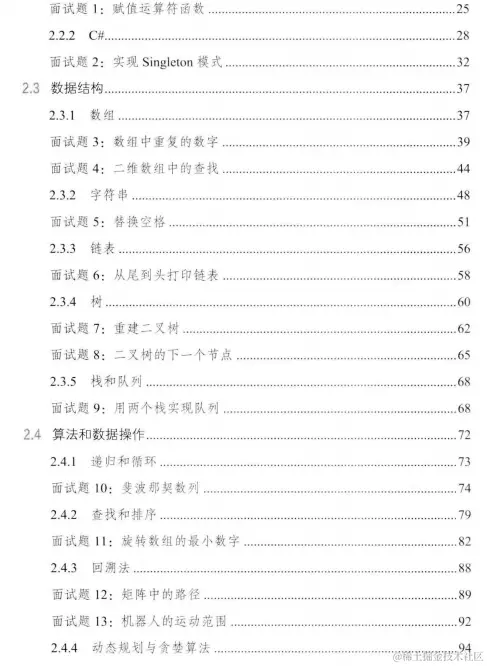 - 解决面试题的思路,总结编程面试中解决难题的有效思考模式,如在面试中遇到复杂难题,应聘者可利用画图、举例和分解这3种方法将其化繁为简,先形成清晰思路,再动手编程;