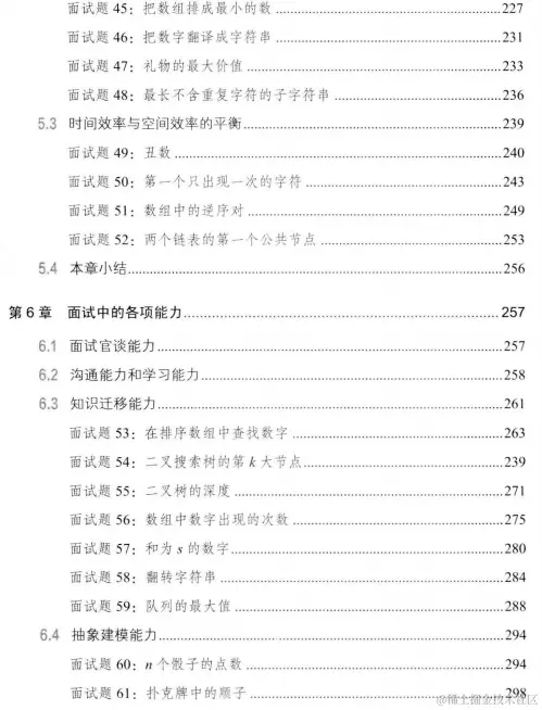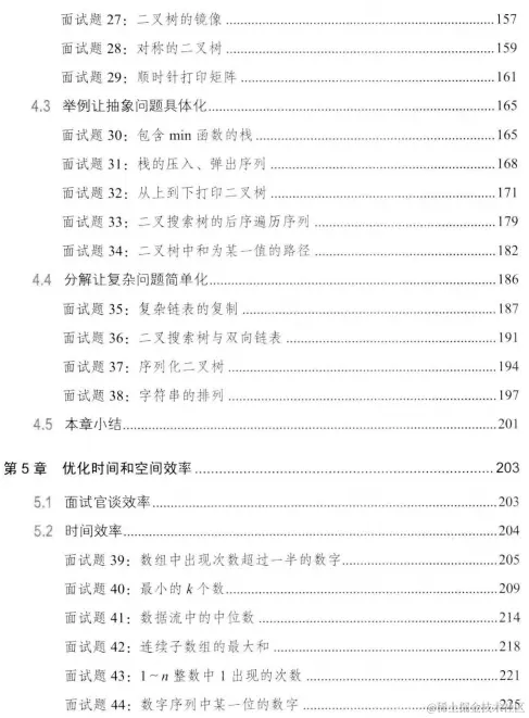 - 优化时间和空间效率,读者将学会优化时间效率及用空间换时间的常用算法,从而在面试中找到最优解:面试中的各项能力,总结应聘者如何充分表现学习和沟通能力,并通过具体面试题讨论如何培养知识迁移、抽象建模和发散思维能力;两个面试案例,总结哪些面试举动是不良行为,而哪些表现又是面试官所期待的行为。
