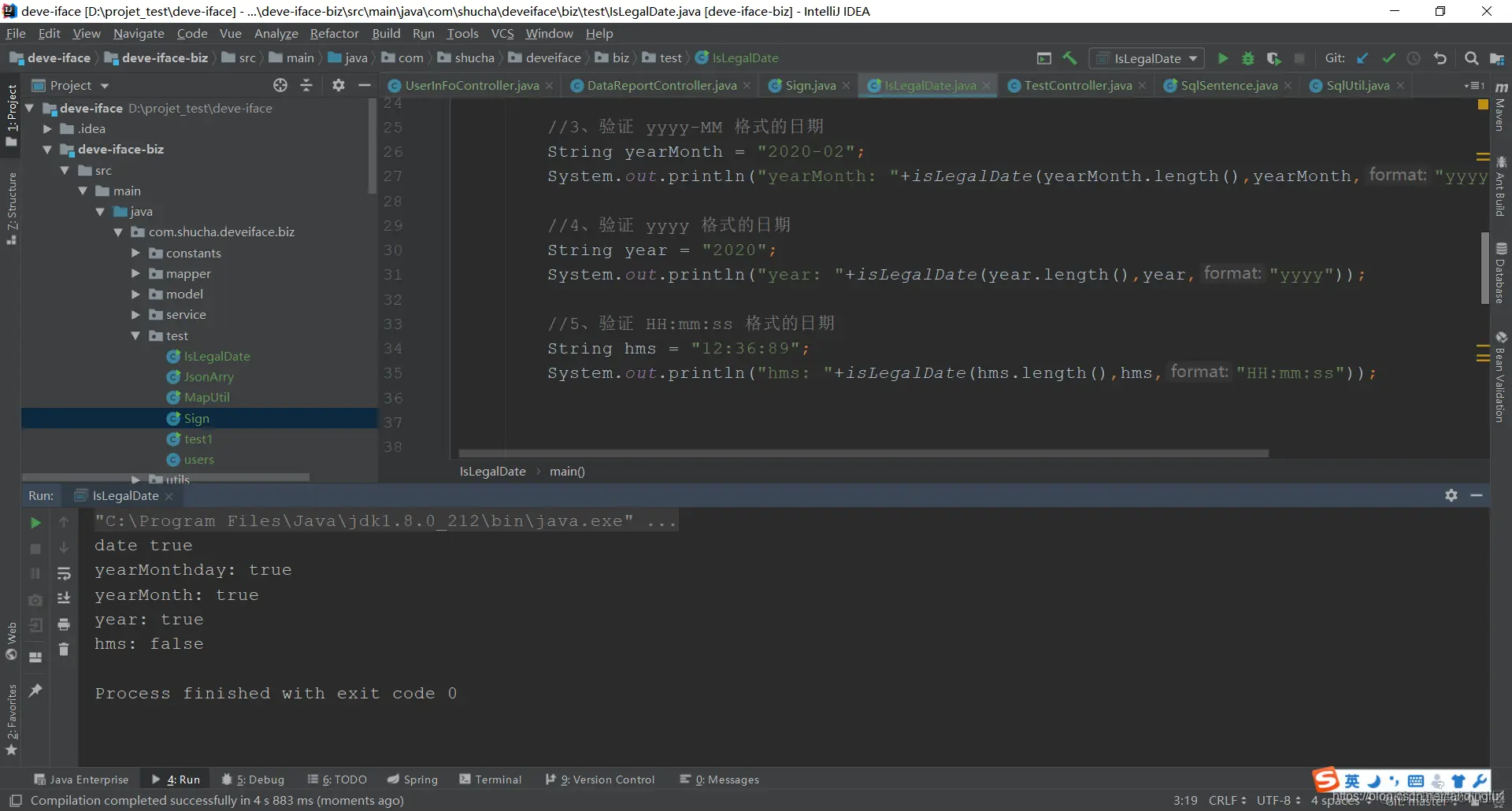 6、下面是一个完整的方法类直接运行就可以实现验证日期格式是否正确的