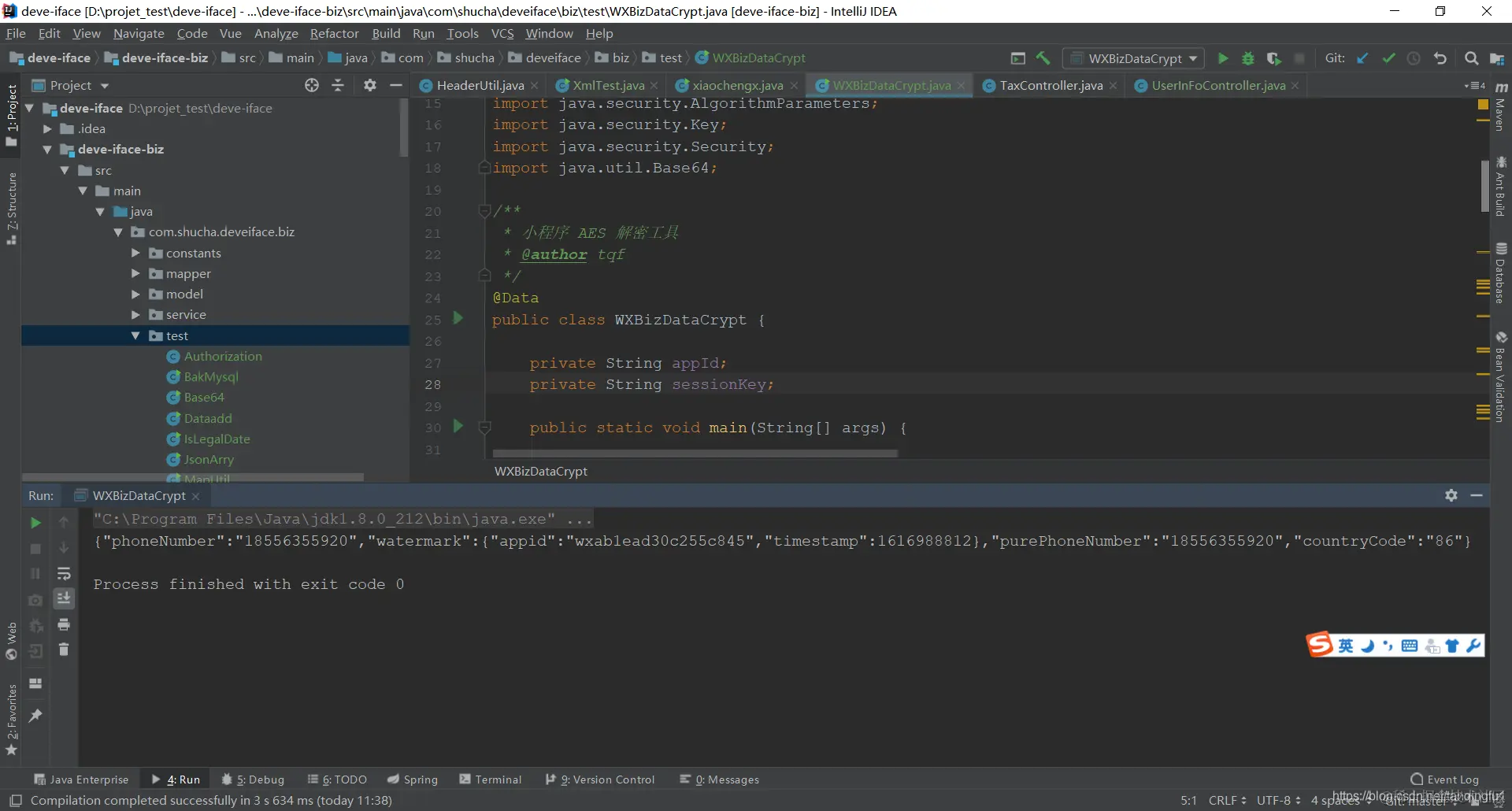 WXBizDataCrypt pc = new WXBizDataCrypt(appId,sessionKey);