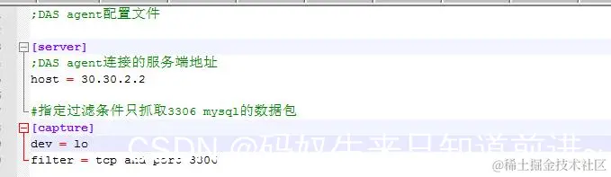 【server】此处 host 字段配置的 IP 地址即为 DAS 设备的业务口 IP ,填写正确