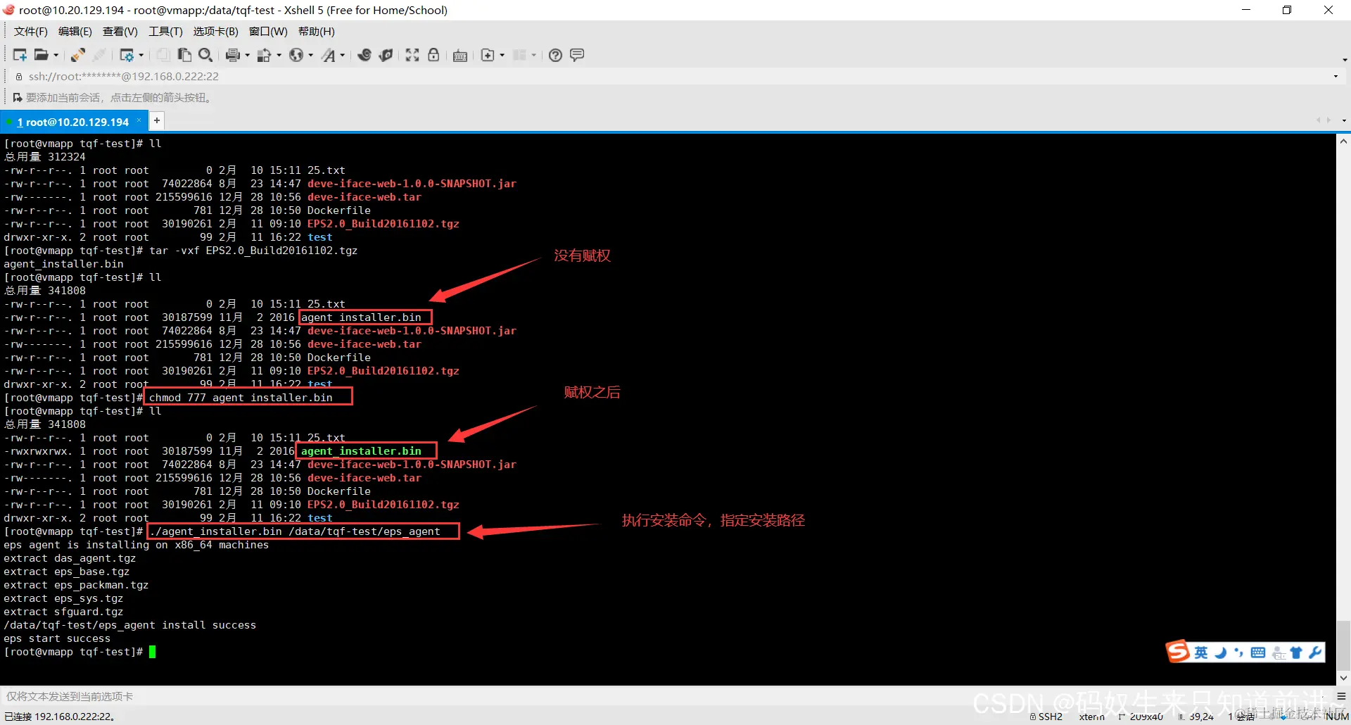 2、然后使用 chmod 7777 agent_installer.bin 赋予操作执行权限