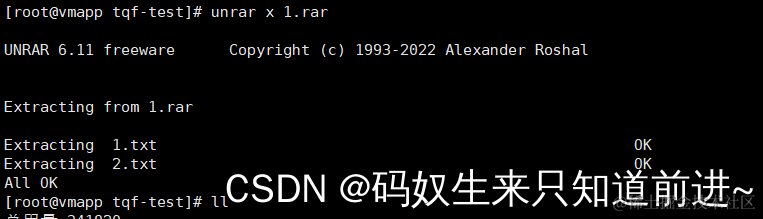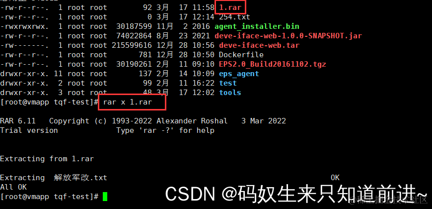 3 、使用解压命令解压