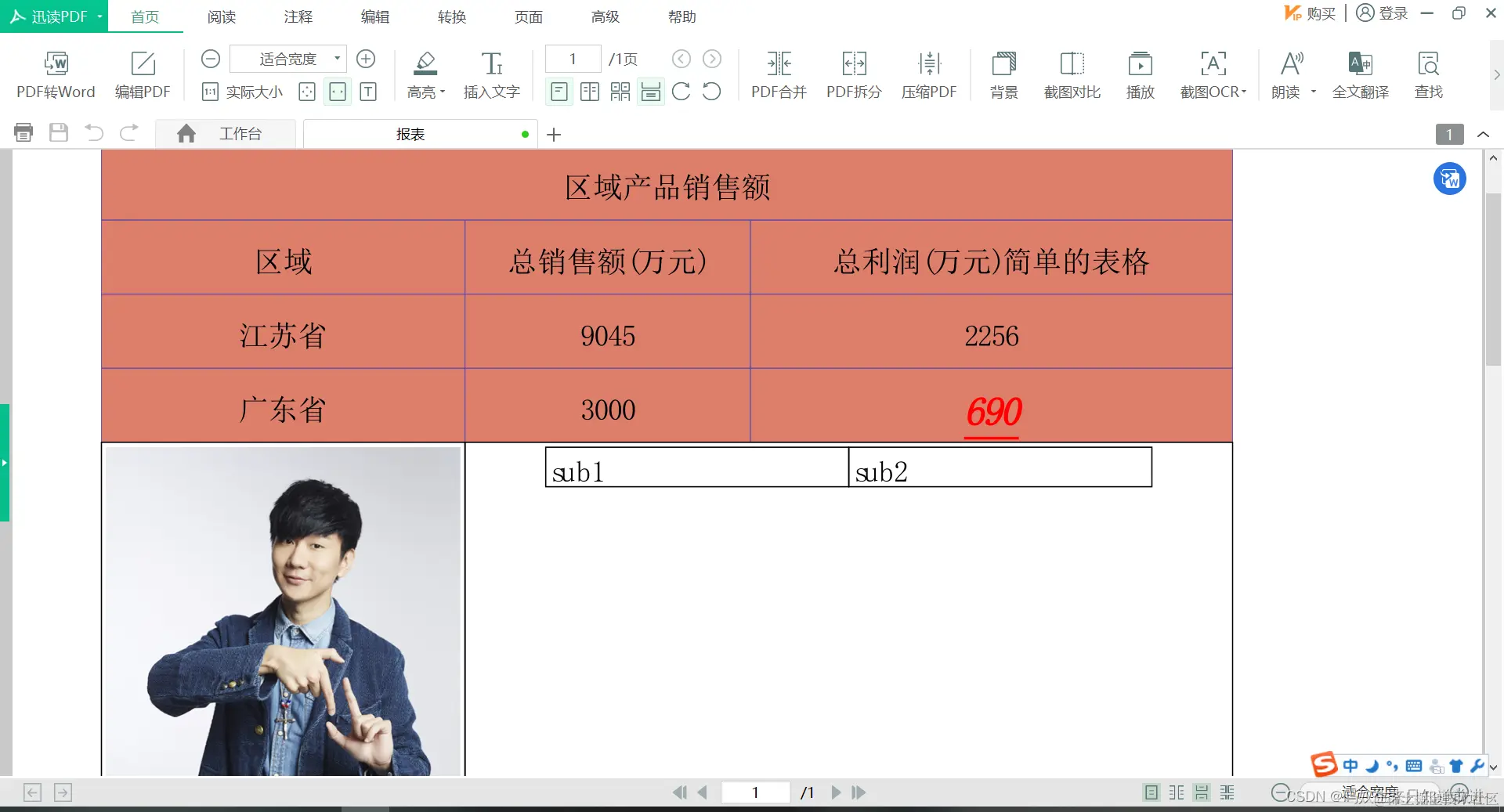 Object[][] datas = {{"区域产品销售额"},{"区域", "总销售额(万元)", "总利润(万元)简单的表格"}, {"江苏省" , 9045, 2256}, {"广东省", 3000, 690}};