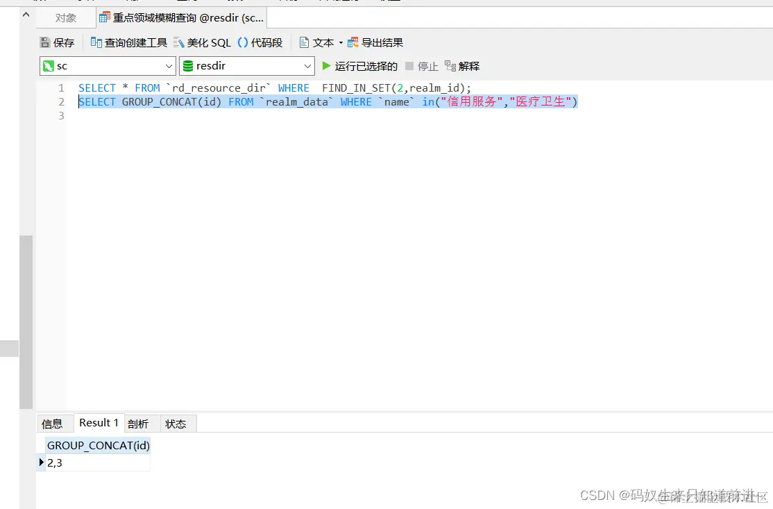 2、FIND_IN_SET函数查询 1,2,3,4