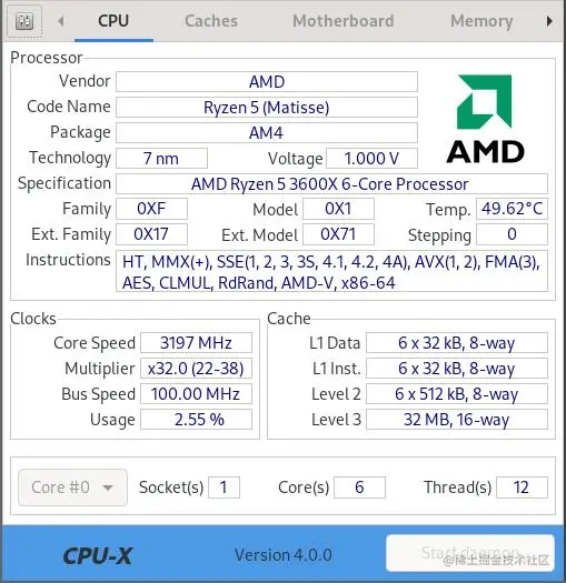 我们推荐 CPU-X,这是一个开源的系统分析和监控应用程序,灵感来自于Windows的CPU-Z。只需从发行版的软件库中安装它,然后像其他应用程序一样启动它。