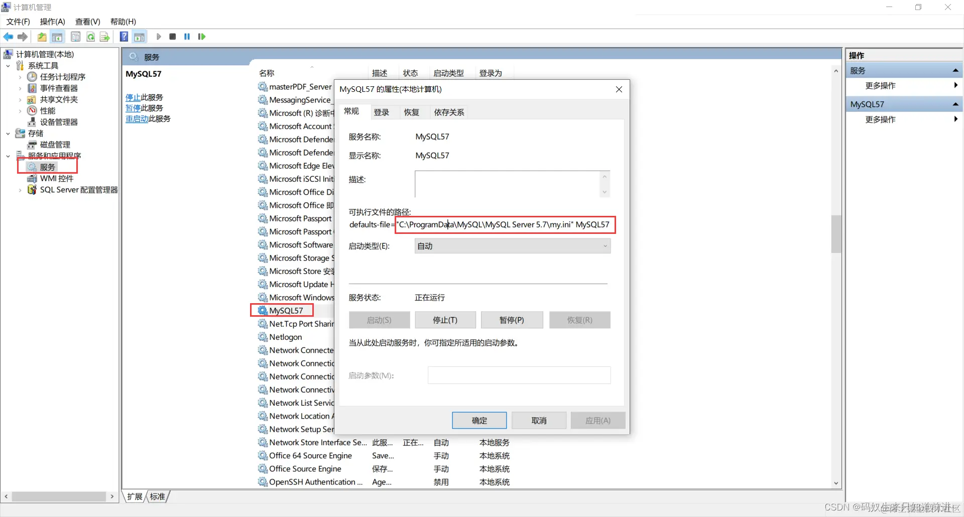 配置文件 地址:"C:\Program Files\MySQL\MySQL Server 5.7\bin\mysqld.exe" --defaults-file="C:\ProgramData\MySQL\MySQL Server 5.7\my.ini" MySQL57