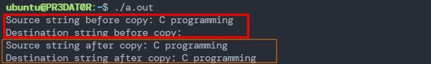 printf("Destination string after copy: %s \n", dest);
