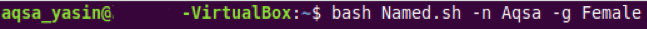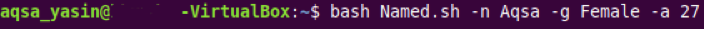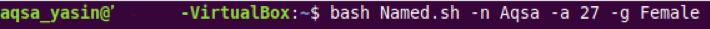 $ bash Named.sh –n Aqsa –g Female –a 27