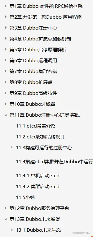 - 然后介绍Dubbo内置的常用注册中心的实现原理,Dubbo扩展点加载的原理和实现,Dubbo的启动、服务暴露、服务消费和优雅停机的机制,Dubbo中RPC协议细节、编解码和服务调用实现原理,Dubbo集群容错、路由和负载均衡机制,Dubbo的扩展点相关知识,Dubbo高级特性的实现和原理,+XXX_WWW666666Dubbo 常用的Filter 的实现原理,Dubbo 中新增etcd3注册中心的实战内容和Dubbo服务治理平台的相关知识;