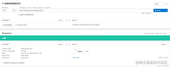 同样访问http://localhost:8005/encrypt/status,返回ok