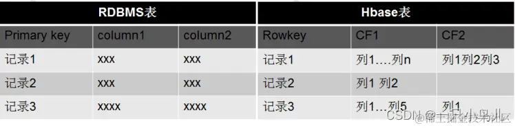 型数据库的表和 Hbase 数据库的表: