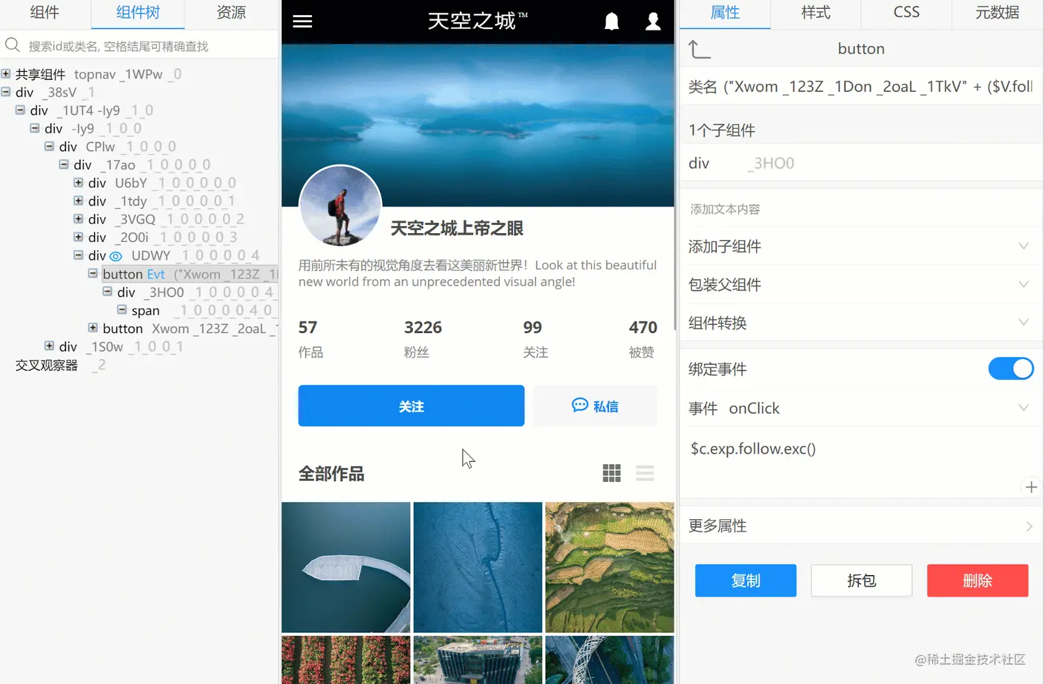 关注的按钮在多个页面都会用到,功能相同,所以我们把它抽到全局表达式里面$c.exp.follow: