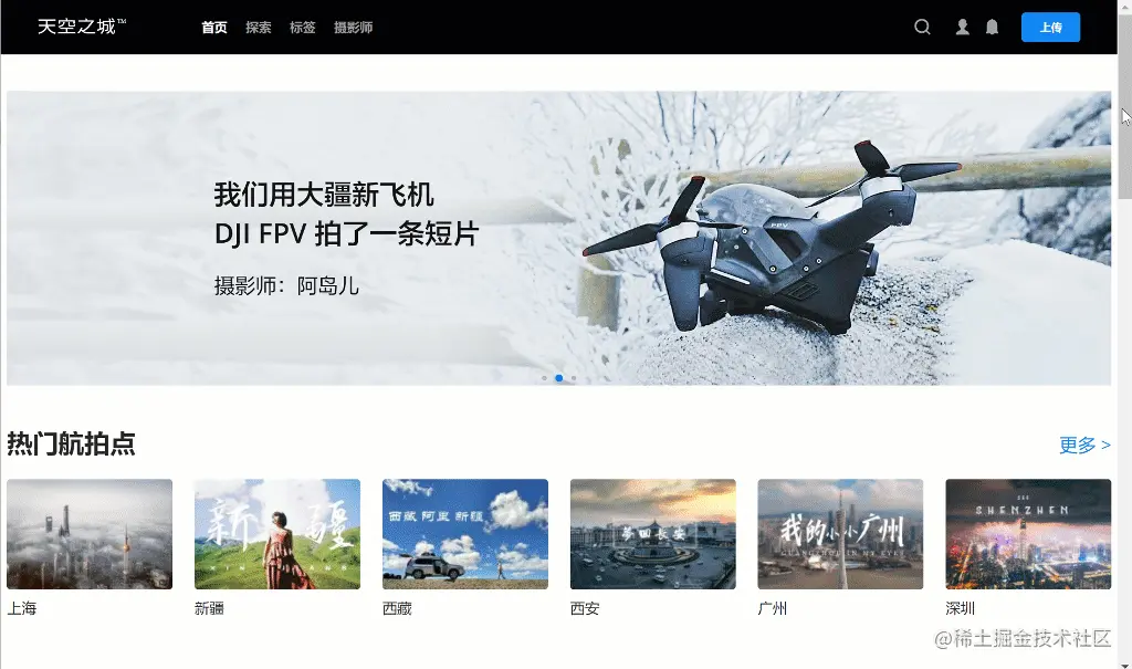 本课程是大疆旗下的天空之城(全球航拍爱好者和专业摄影师的作品社区)的仿站习作。