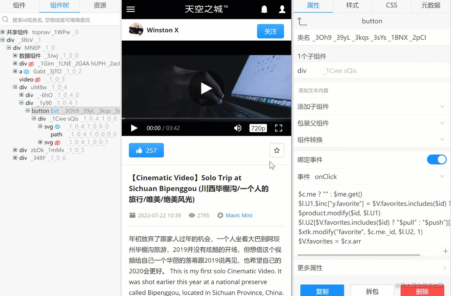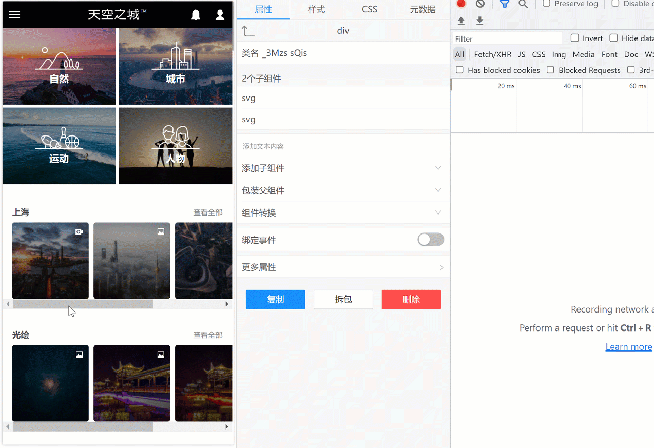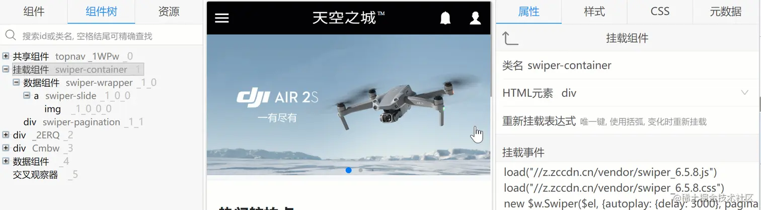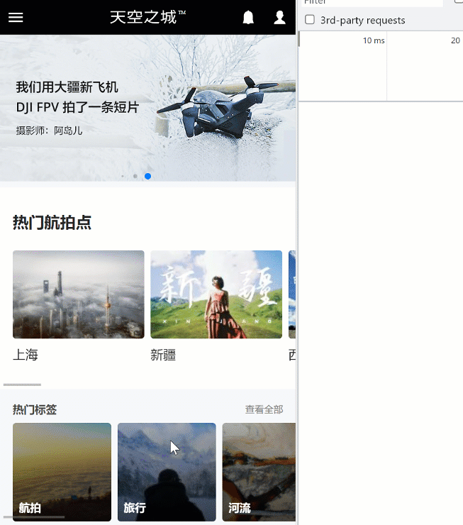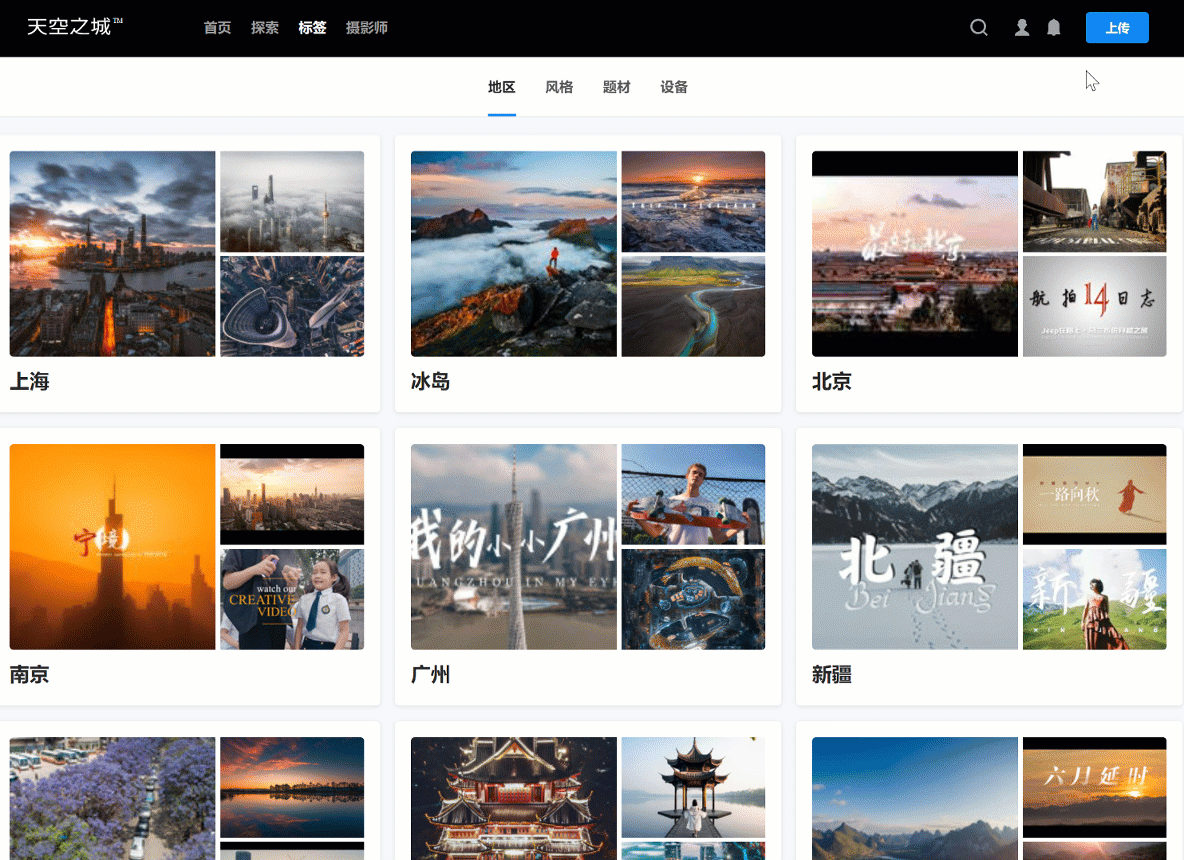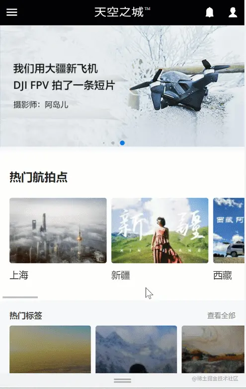 热门航拍点和热门标签里数据组件的数据源是在【应用中心】的$c常量里预设好的$c.obj.region和$c.obj.tags对象,获取对象keys作为数组来循环渲染的。