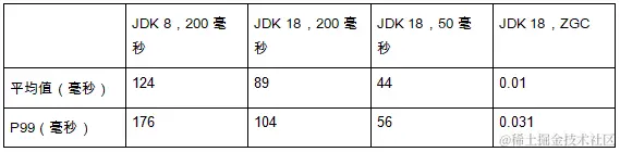 ZGC的垃圾回收暂停。如果你的应用程序需要更短的垃圾回收暂停时长,可以参考表4,该表比较了G1与另一个专注于暂停时长的垃圾回收期ZGC。该表采用的负载与前面相同。最右边一列给出了ZGC的暂停时长。