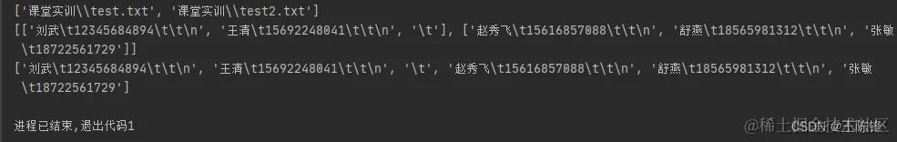 输出一下,可以看到将几个txt的文件数据以字列形式存在同一个列表