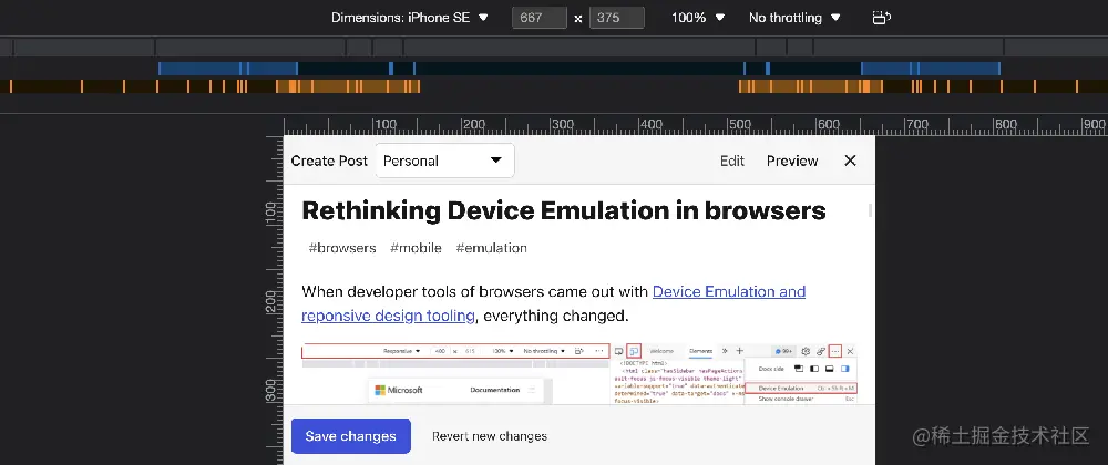 Device Emulation in developer tools is great, but it doesn’t deliver to all users of it and could be much better.