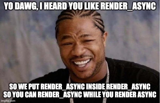 你可以为一个端点调用render_async,而这个端点在其响应中又有一个render_async调用。你可以在README中了解更多细节。 新版本允许你区分嵌套render_async的逻辑所在的位置: