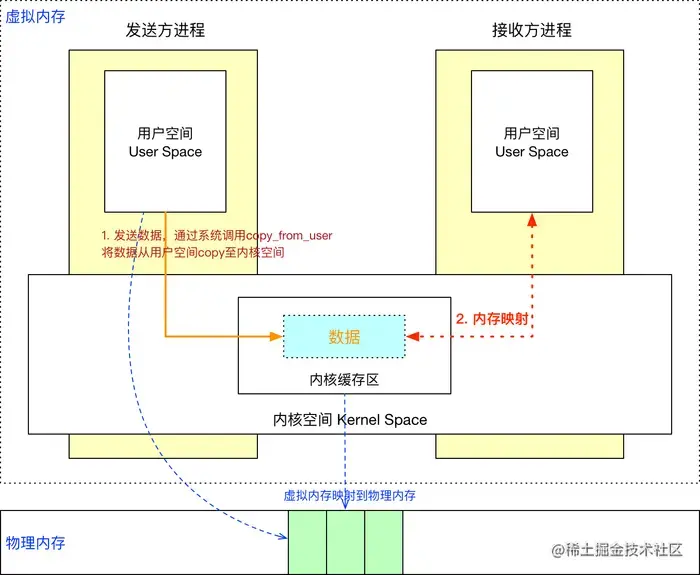 可以看到用户空间和内核空间只发生一次数据拷贝 , 性能够好了吧 。 但我还想性能更加好,能不能连一次数据拷贝都不用?