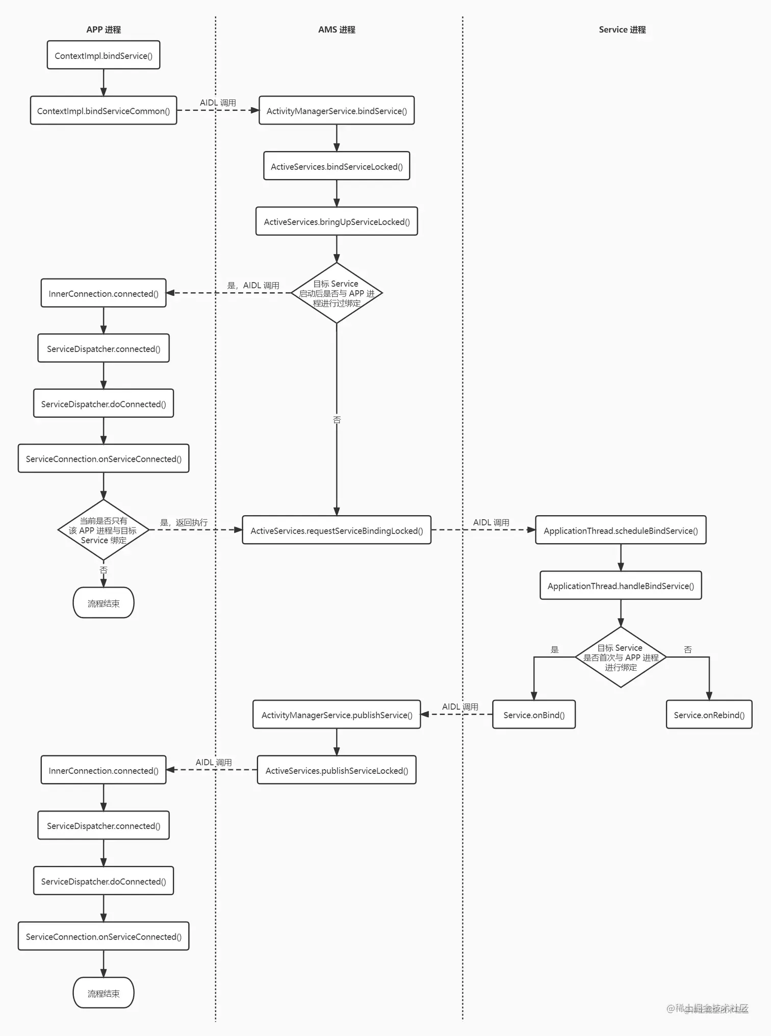 还记得文章开始的那个在java层使用的demo吗 , server端的Binder 实体 , 通过onBind 返回给客户端 。我们知道客户端使用的是BinderProxy ,并不是server端的Binder 实体,两个进程无论如何都不能使用同一个对象, 那么它是如何在变成BinderProxy的呢? 带着这个问题我们分析下,binder 引用(句柄)是怎么从server端 传递到client的。