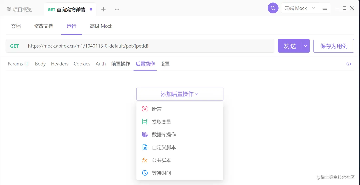 Apifox在这个点我个人感觉创新是比较多的,它把Postman里需要写脚本的功能都封装成了可视化界面,直接通过填写参数的方式去调试。