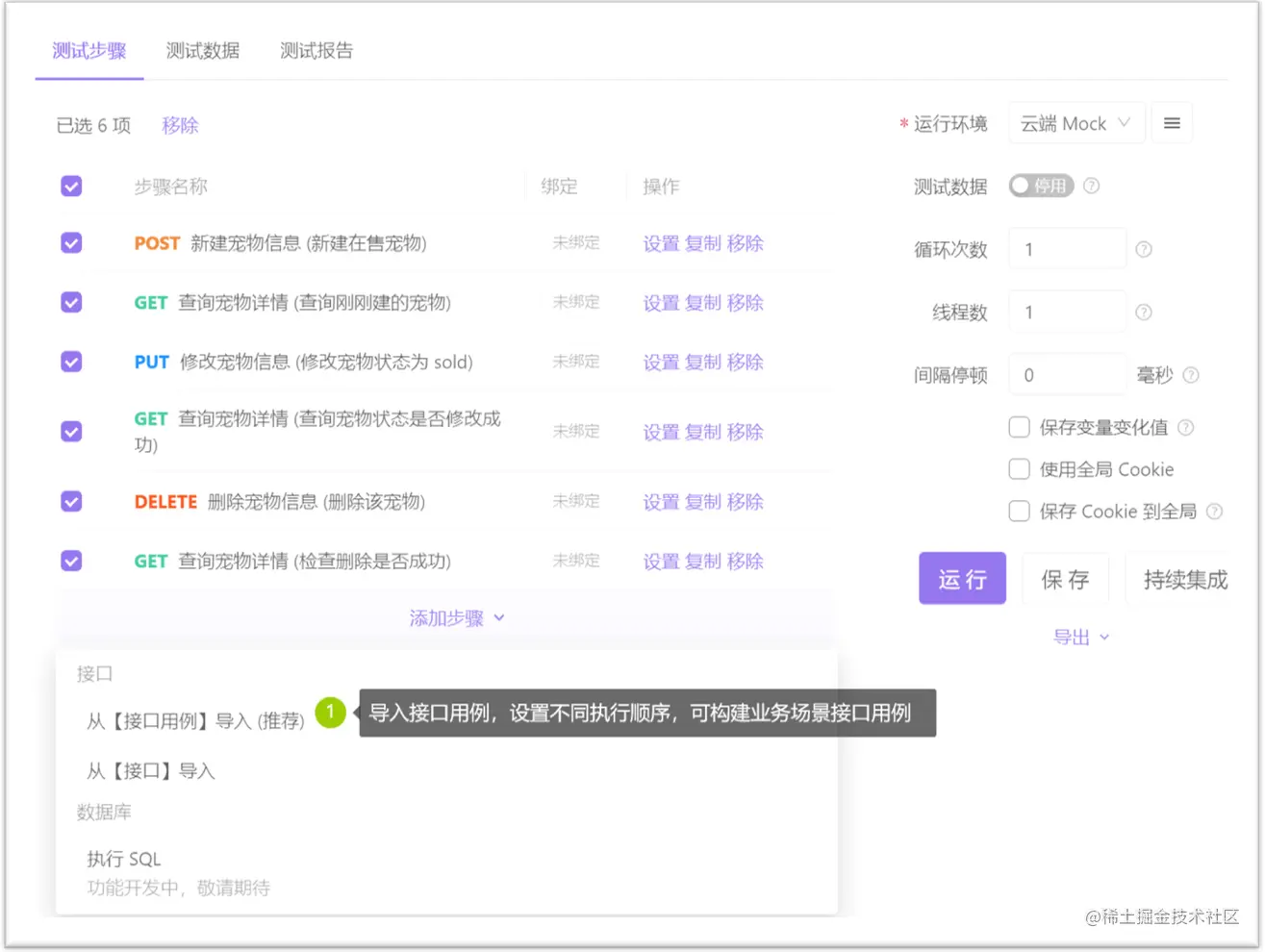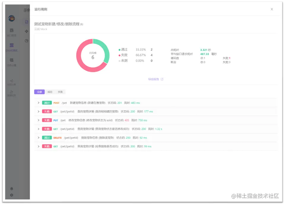 Apifox 做到的是单个接口的测试用例仅需修改参数就能一键生成,一旦接口修改,接口用例也会自动更新,测试人员只需要在回归的时候做少量的修改就可以。