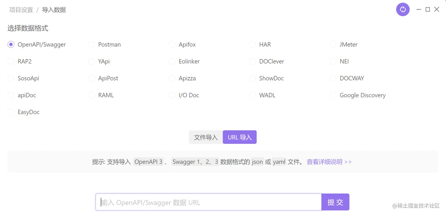 a.支持导入swagger、postman、rap2等格式的接口文档