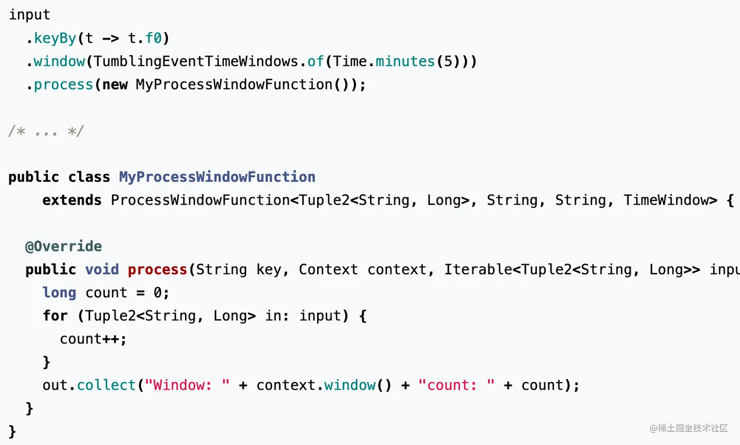 - 每条数据到来,会存储到window的state中,等到window出发计算的时候,将所有的数据拿出来一起计算