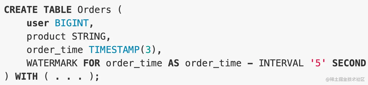 WATERMARK FOR order_time AS order_time - INTERVAL '5' SECOND