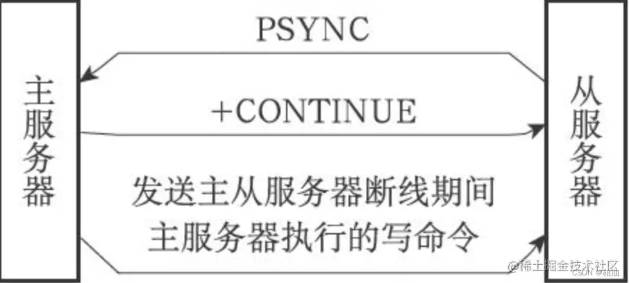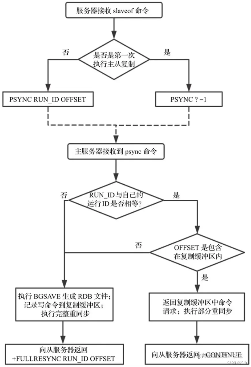 从服务器请求同步主服务器的命令也改为了 psync。当从服务器连接到主服务器时,会向主服务器发送 psync 命令请求同步数据,同时告诉主服务器自己已经接收到的复制偏移量,主服务器判断该复制偏移量是否还包含在复制缓冲区;